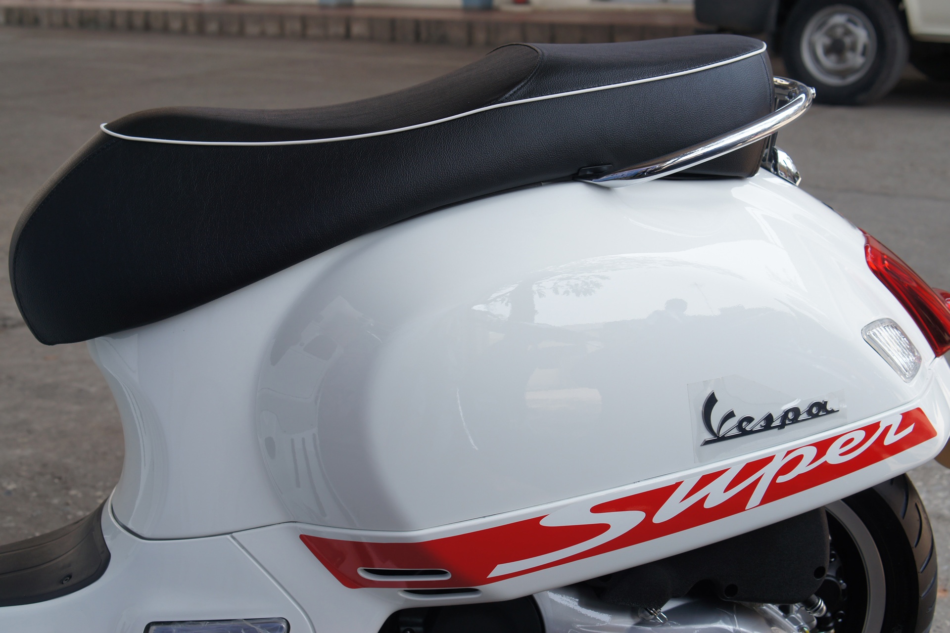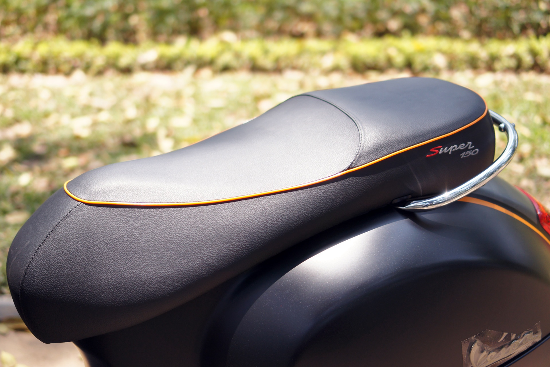 | Đường viền trên Vespa GTS Super 150 đặc biệt có màu cam tương tự phần đầu xe. Bên cạnh đó, yên xe còn được thêu chữ Super 150 và loại bỏ tên in trên thân xe. Đây là những điểm khác biệt dễ nhận thấy so với phiên bản thường. |