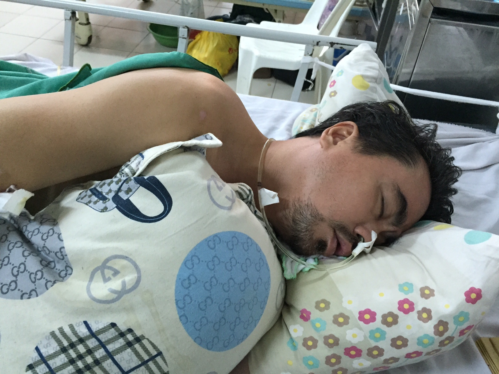 Nguyễn Hoàng nằm mê man trên giường bệnh. Ảnh: Nguyễn Bá Ngọc. |