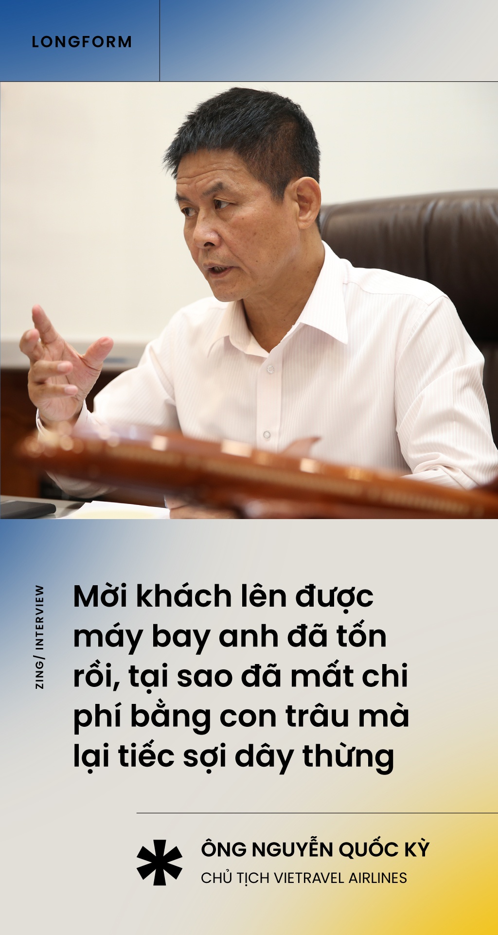 Zing trò chuyện cùng Chủ tịch HĐQT của cả hai doanh nghiệp là ông Nguyễn Quốc Kỳ để hiểu thêm về hãng bay mới nhất của hàng không Việt.