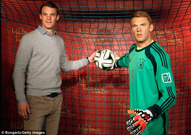 Manuel Neuer rất ấn tượng trước bàn tay tài tình của các nghệ sĩ khi họ tạo ra phiên bản bằng tượng sáp giống hệt thủ môn số 1 của Bayern Munich và đội tuyển Đức.