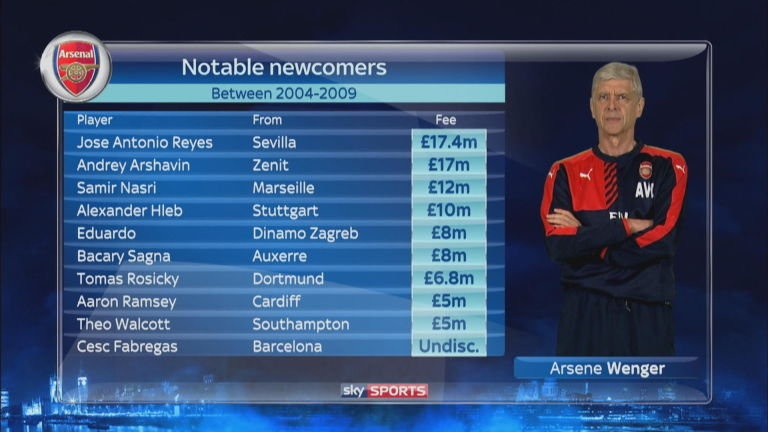 | Những bản hợp đồng đáng chú ý của Arsenal từ 2004 đến 2009. Ảnh: Sky Sports. |