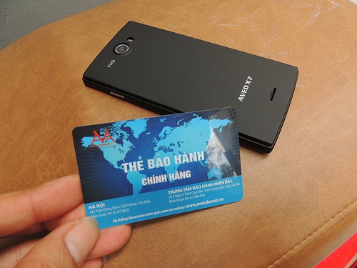 | Nắp hộp màu trắng phải có website của hãng Avatelecom và tên máy Aveo X7. |