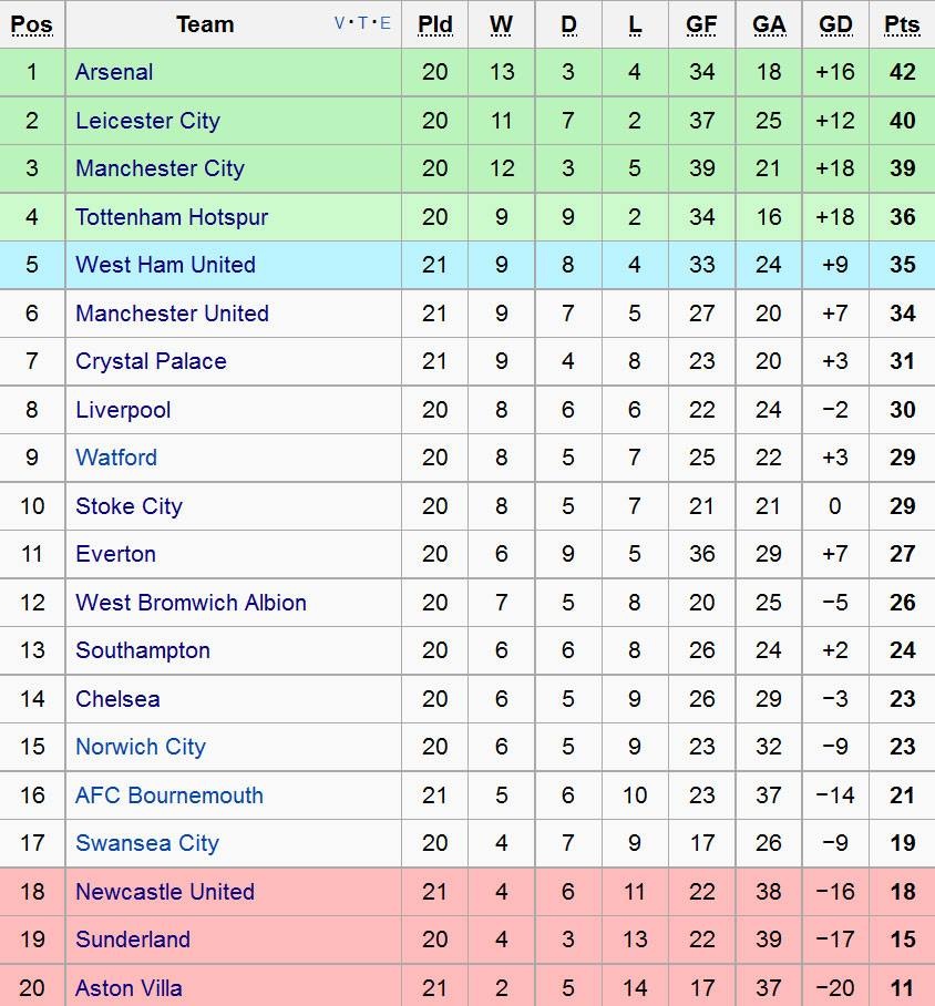 Bảng xếp hạng Premier League sau lượt trận rạng sáng 13/1.