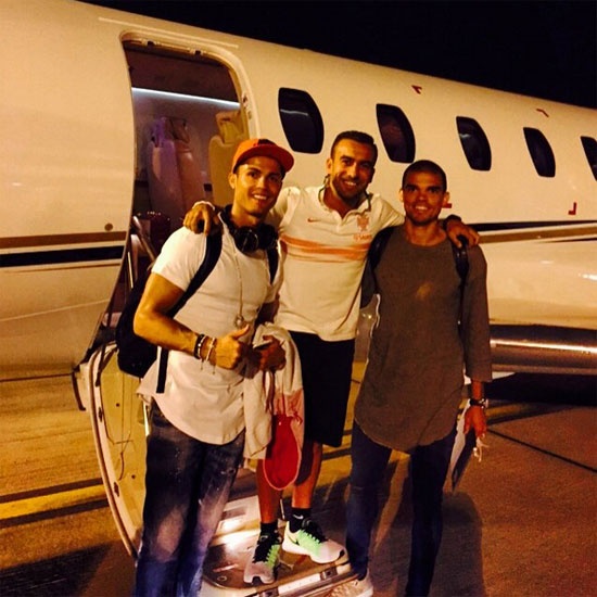 | Ronaldo cùng đồng đội trở về nhà sau chiến thắng 1-0 trước Albania. |