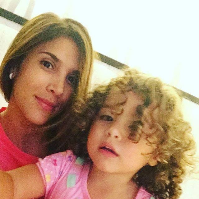 | "Đi ngủ với mái tóc bông xù" - bà xã của Rodriguez và con gái selfile trước khi ngủ. |
