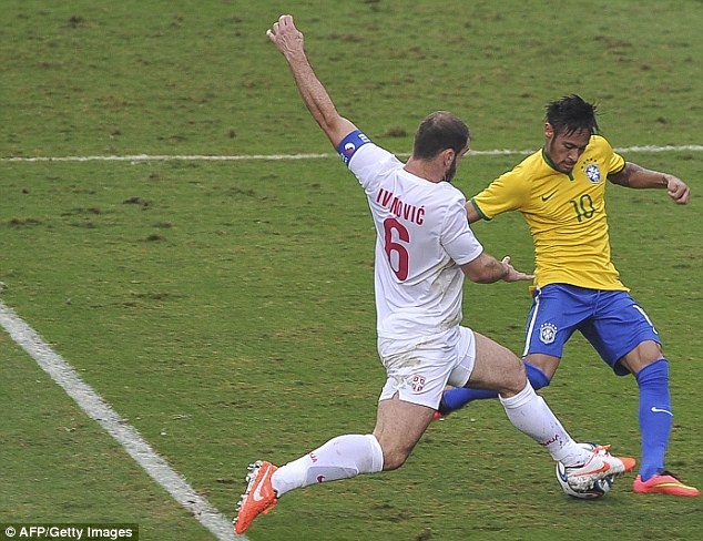 Thủ quân của ĐT Serbia, Ivanovic theo kèm Neymar rất quyết liệt.