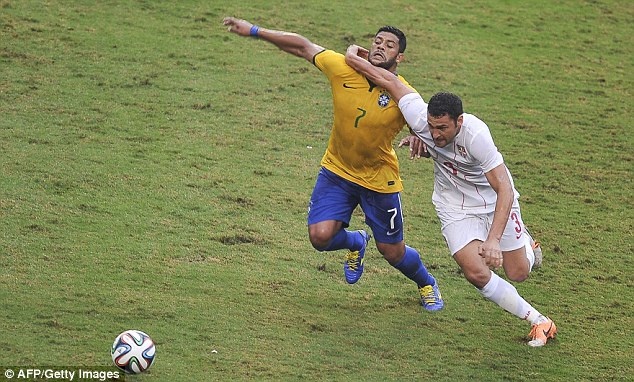 Hulk cũng nhận được sự chăm sóc nhiệt tình từ các hậu vệ bên phía tuyển Serbia.
