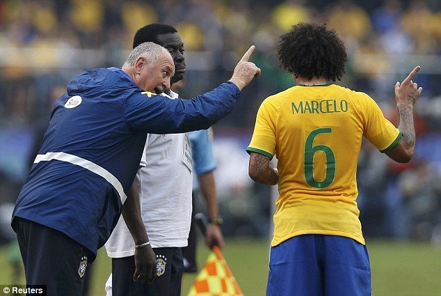 HLV Scolari tích cực chỉ đạo học trò. Marcelo là cầu thủ được ông nhắc nhở khá nhiều.