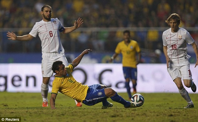 | Những cầu thủ của tuyển Brazil ra sân thi đấu ở trận gặp Serbia gồm Julio Cesar, Dani Alves (Maicon , 71'), Luiz, Thiago Silva, Marcelo (Maxwell, 74'), Gustavo, Paulinho (Fernandinho 64), Oscar (Willian, 46'), Hulk, Fred (Jo, 75'), Neymar. |