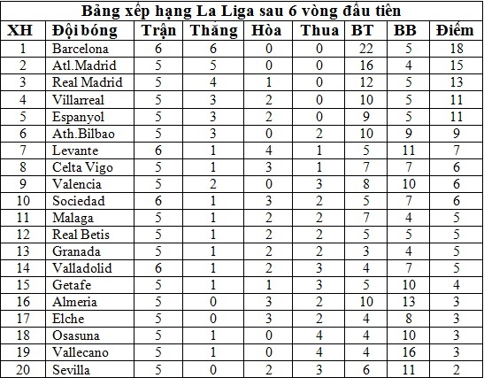 | Messi nâng tổng số pha lập công tại La Liga lên con số 7 sau 6 vòng đấu. |