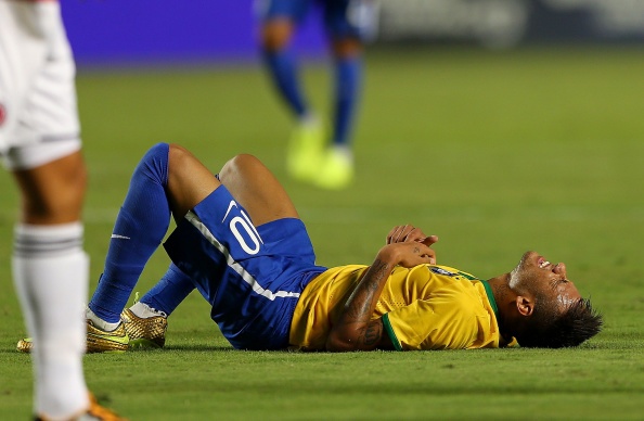 | Không ít lần Neymar lăn lộn nằm sân sau những cú vào bóng nguy hiểm.
