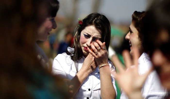 Ivanka Georgieva, một cô gái 21 tuổi, trang điểm trong xe hơi trước khi gặp những người đàn ông trong chợ cô dâu tại làng Mogila, nơi cách thủ đô Sofia của Bulgaria khoảng 240 km về phía đông.