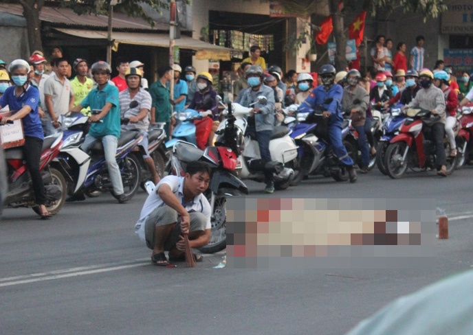 Bị ngã xuống đường, người điều khiển xe máy chưa kịp đứng dậy thì bị phương tiện gây va chạm cán qua người, tử vong tại chỗ. Cháu bé 5 tuổi bị xây xát nhẹ.
