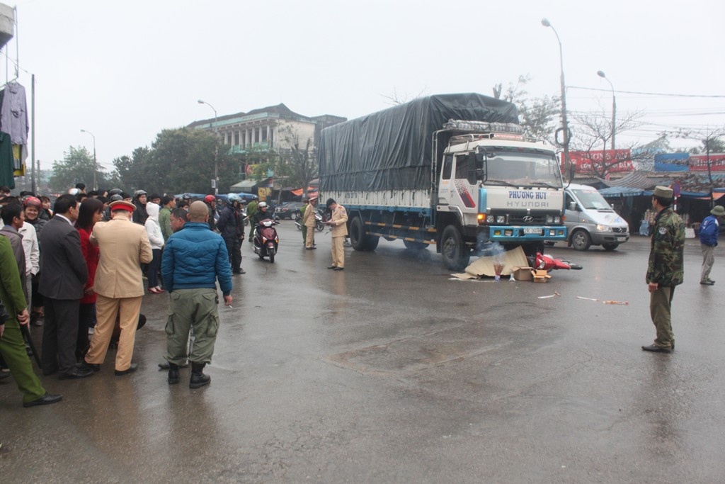 Đúng lúc đó, chiếc xe tải của một nhà xe đóng tại TP. Vinh lao tới, tài xế không kịp xử lý nên đã cán ngang qua đầu khiến chị Thơm tử vong tại chỗ. Vụ việc xảy ra vào giờ cao điểm đã gây ra tình trạng hỗn loạn, ách tắc giao thông cục bộ.