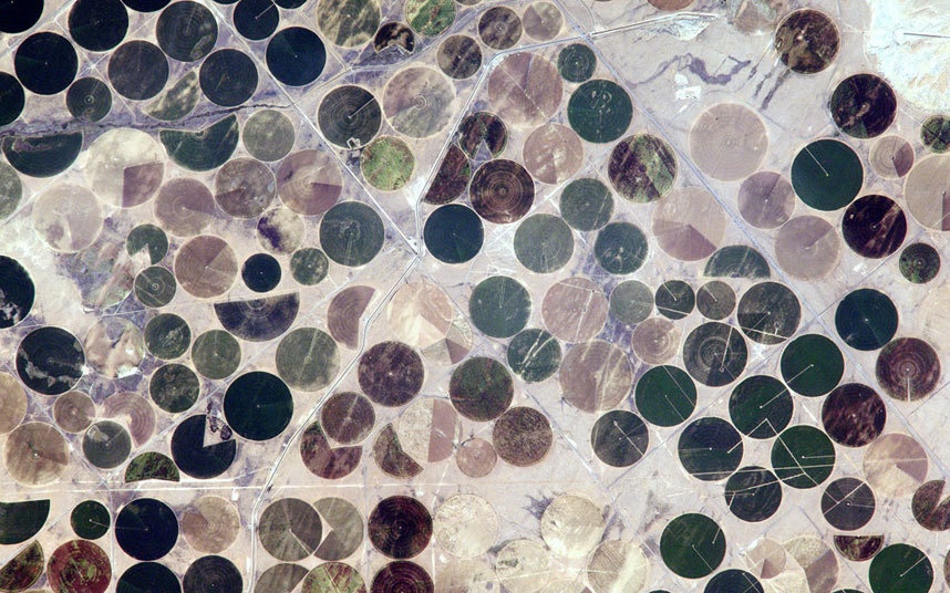 Phần còn lại của Aral Sea, hồ nước lớn thứ tư trên thế giới. Các công trình thủy điện từ thời Liên Xô cắt nguồn nước sống còn dẫn vào hồ, khiến nó ngày càng khô cạn. |