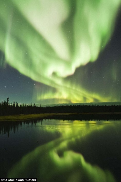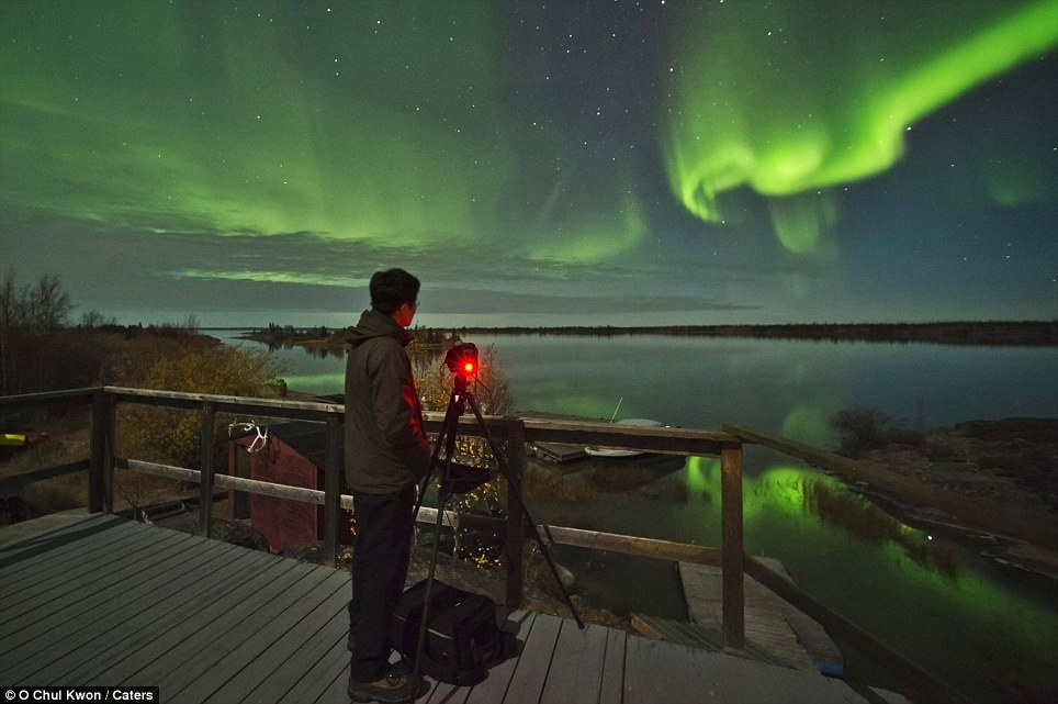 Một nhiếp ảnh gia Hàn Quốc chụp hiện tượng thiên nhiên kỳ thú tại ngôi làng ở Yellowknife, phía Bắc Canada. Ảnh: Caters News