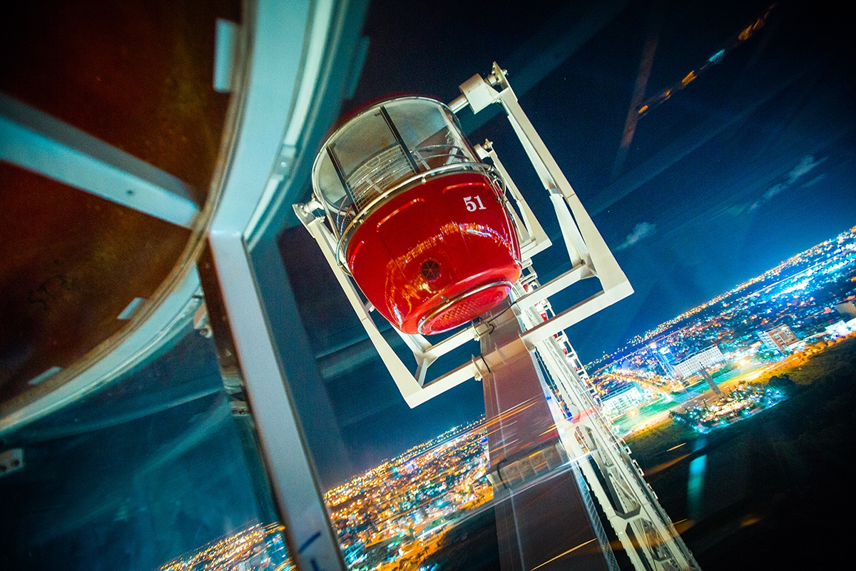 | Từ trên Vòng quay Mặt Trời - Sun Wheel, chúng ta có thể ngắm toàn cảnh vẻ đẹp lung linh của thành phố khi đã lên đèn. |