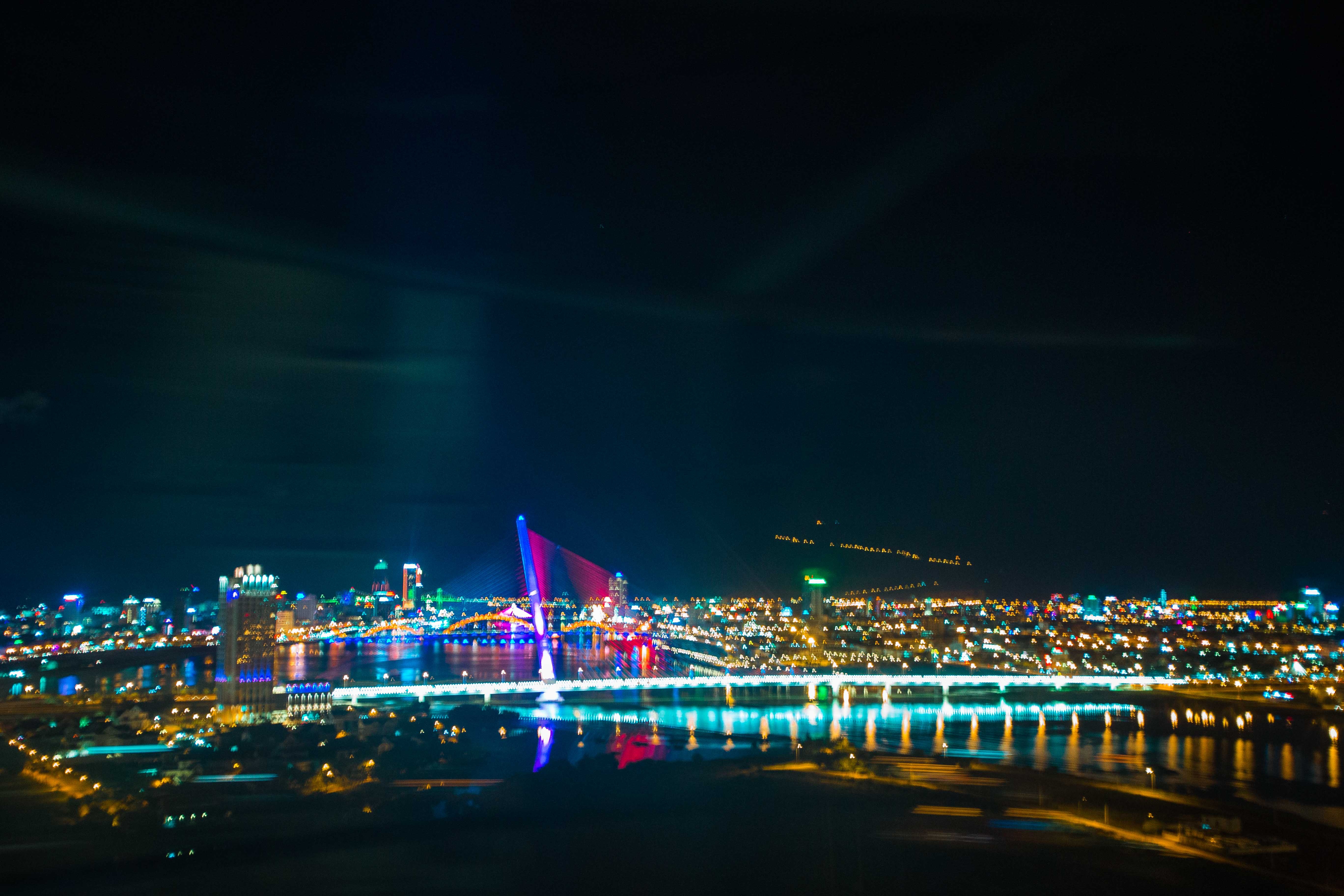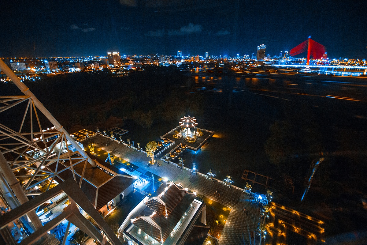 | Đà Nẵng như mang một vẻ đạp khác, lung linh và huyến ảo hơn khi nhìn từ vòng quay khổng lồ đầu tiên tại Việt Nam. |