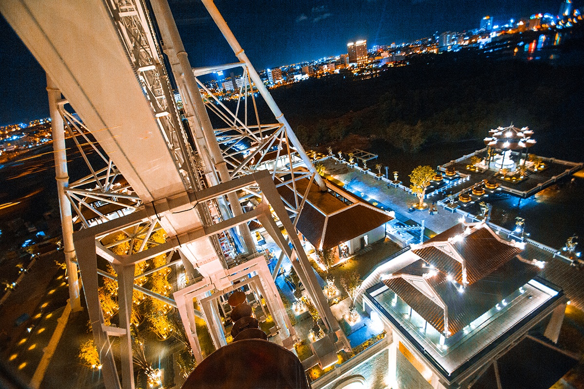 Nhưng gần đây các bạn trẻ lại có một điểm ngắm thành phố trên cao nữa. Đó chính là Vòng quay Mặt Trời - Sun Wheel, nơi có độ cao đến 115m.