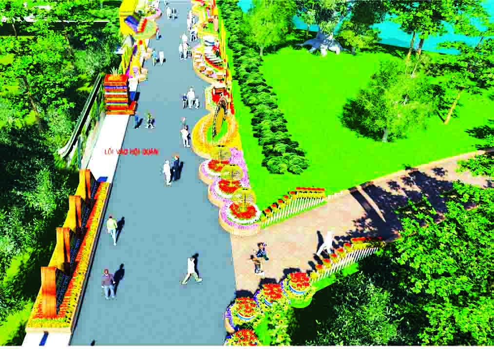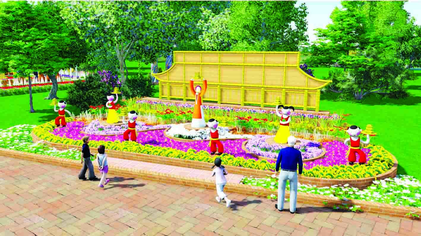 | Mô phỏng đường hoa Trấn Biên nhìn từ khinh khí cầu. Tại đường hoa, ban tổ chức cũng xây dựng tiểu cảnh dành riêng cho trẻ em. |