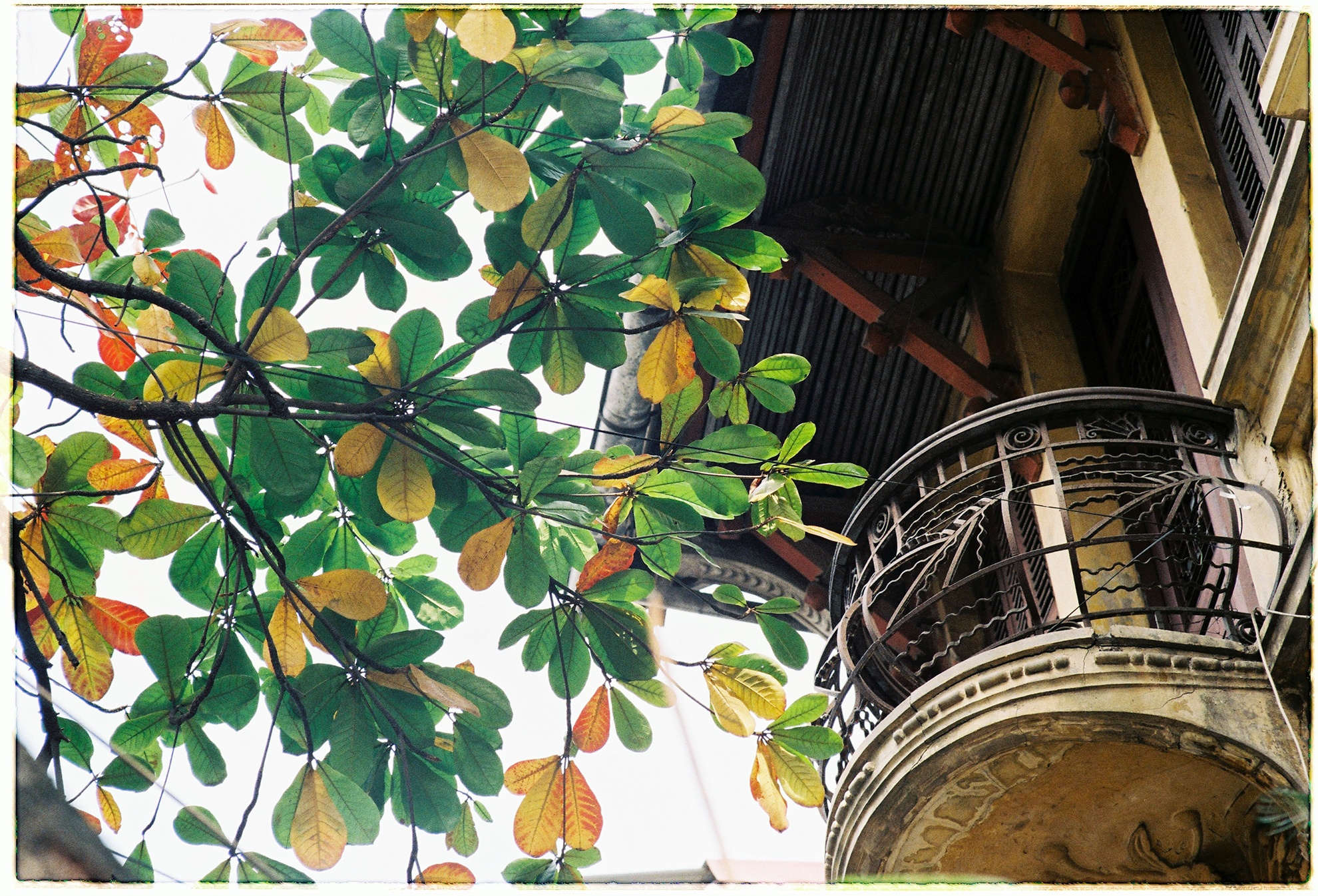 | Căn biệt thự Pháp cổ đầu phố Hàng Chai đẹp như một bức tranh dưới tán bàng đang chuyển dần từ xanh sang đỏ.