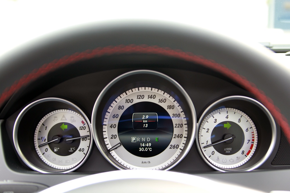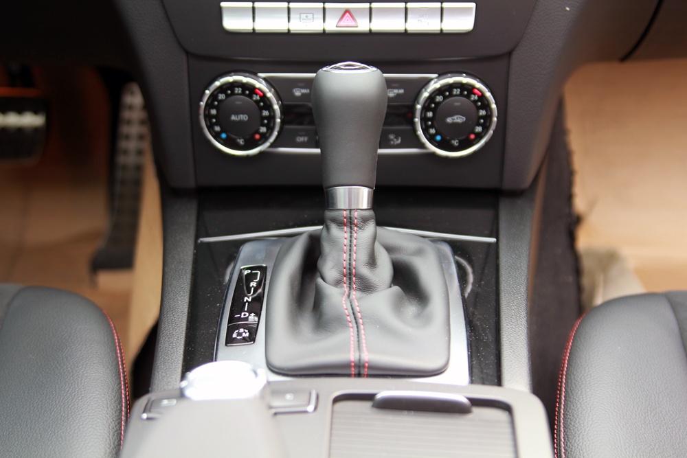 | Hộp số 7 cấp 7G-Tronic với ba chế độ vận hành E - tiện nghi, S - thể thao và M - bán tự động. Ở chế độ động bán tự động, hộp số 7 cấp thể hiện trạng thái trên màn hình trung tâm. C300 AMG còn có cần sang số tích hợp trên vô lăng. |