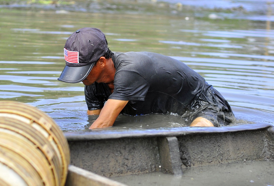 Ngâm mình dưới bùn ô nhiễm đãi trùn chỉ mưu sinh