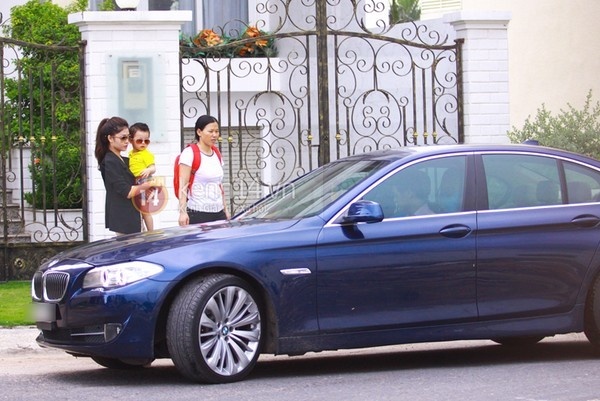 | Trong những ngày gần đây, gia đình Đăng Khôi thường xuất hiện cùng một chiếc xe BMW màu xanh đen. |