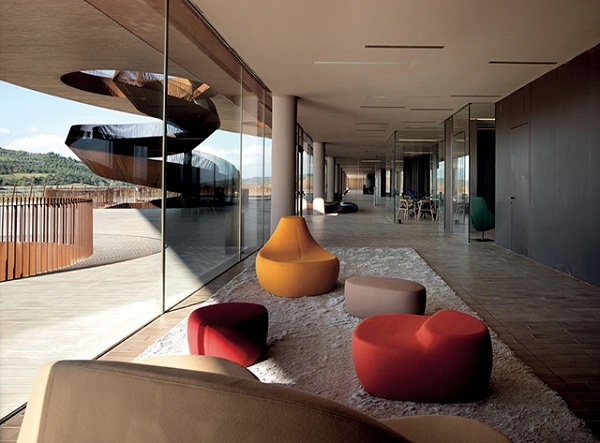 | Khu vực hành chính và các văn phòng khác được thiết kế bắt sáng bằng các lỗ nhỏ trên mái. |
