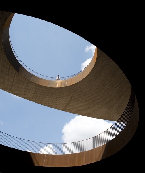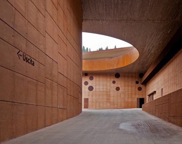 | Toàn bộ bề mặt ngoài của công trình được thiết kế với gam màu gạch nung. |