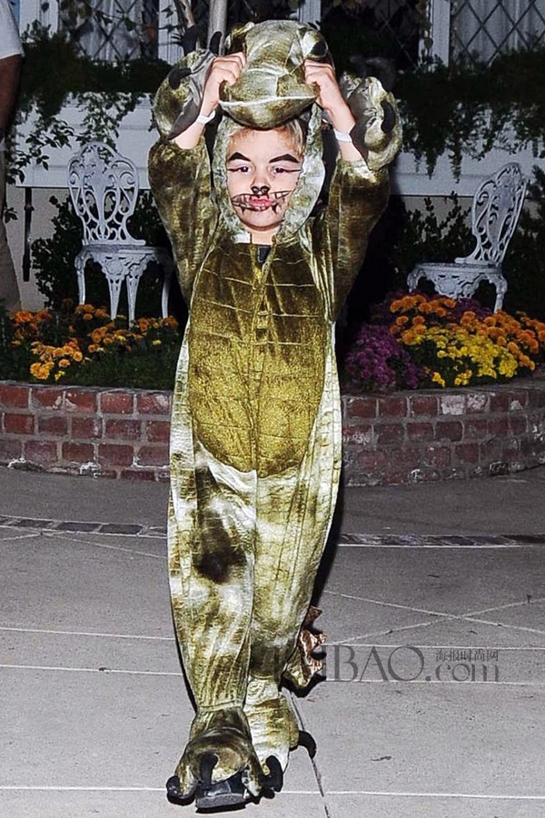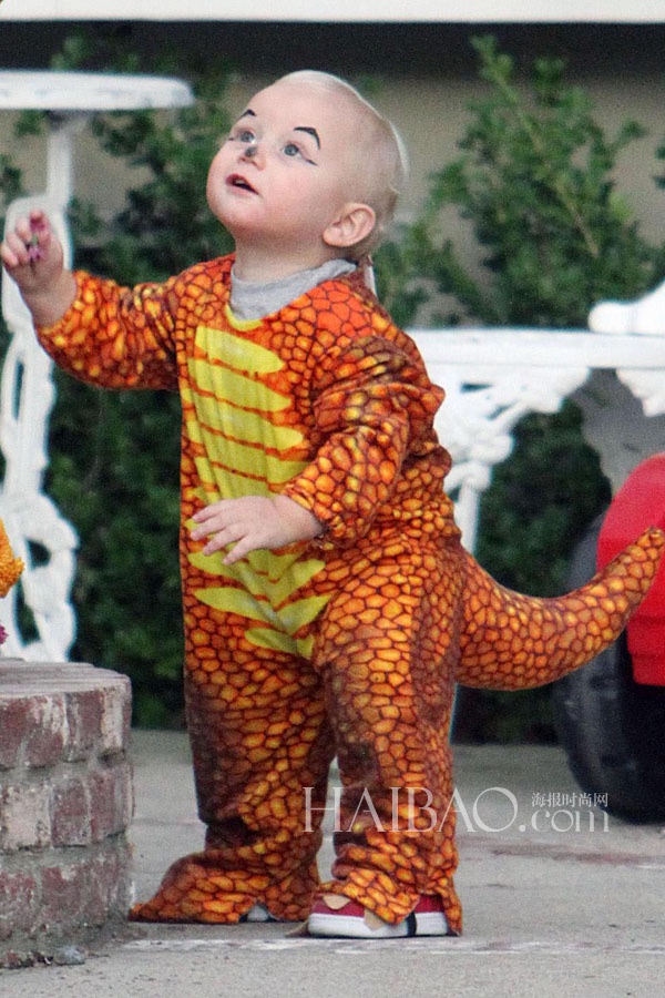 | Zuma Rossdale - con trai của nữ ca sĩ Gwen Stefani và Gavin Rossdale - dễ thương với trang phục chú khủng long vàng. |