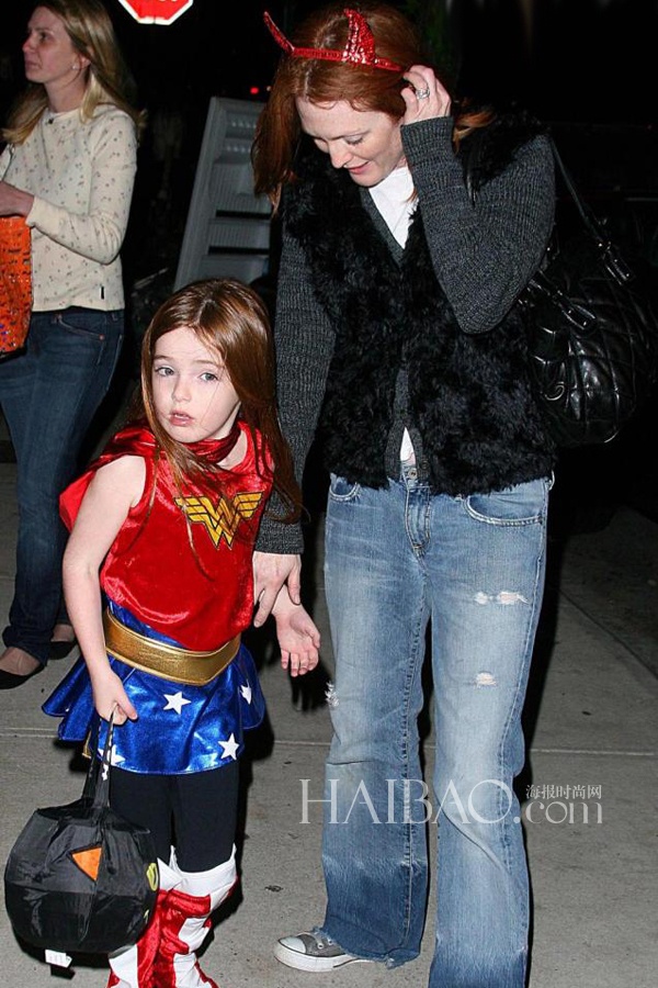 | Cô con gái Liv Freundlich của Julianne Moore thích thú với hình tượng Wonderwoman. |