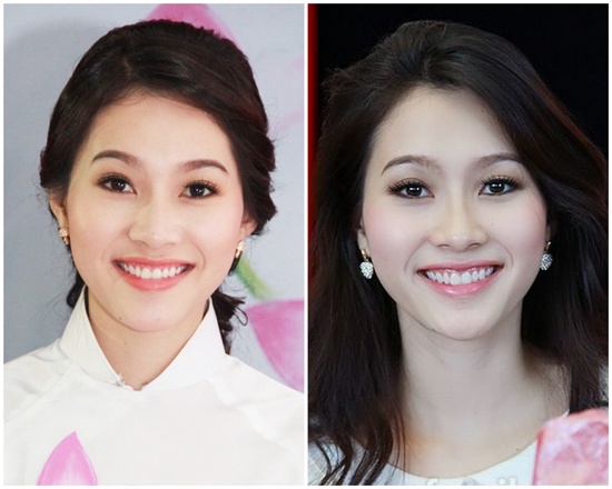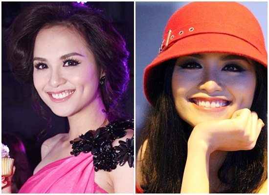 | Mặc dù luôn cười rạng rỡ nhưng Hoa hậu Thu Thảo lại không tránh được khuyết điểm khi sở hữu nụ cười hở lợi như nhiều sao Việt khác. |