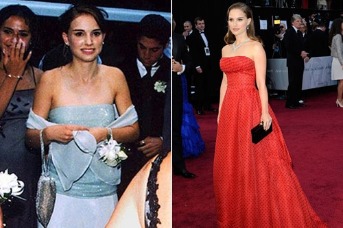 | Natalie Portman đáng yêu trong chiếc váy quây màu xanh nhạt tại đêm prom. |