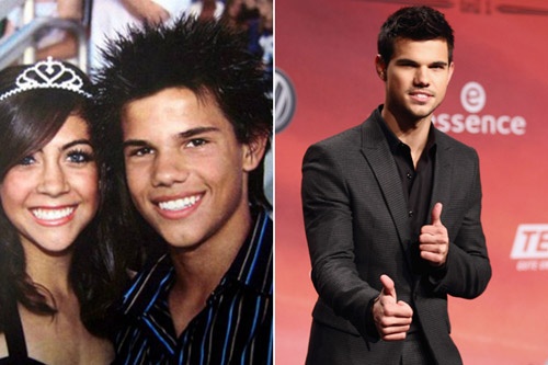 | Diện chiếc áo kẻ sọc tối màu cùng kiểu tóc “nhím” trong đêm dạ hội học sinh, Taylor Lautner thời đi học là một chàng trai tinh nghịch. |