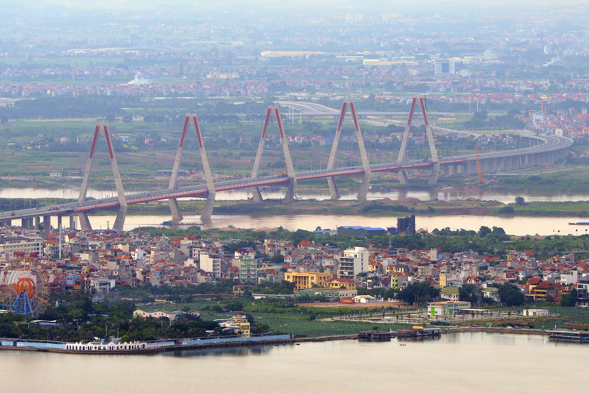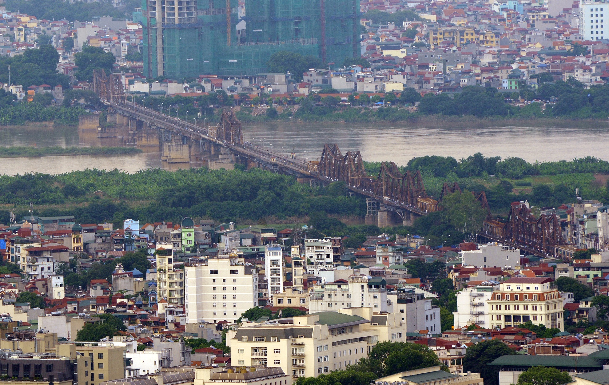 | Chếch hẳn sang phía Đông và Đông Nam là 4 cây cầu Thanh Trì, Vĩnh Tuy, Chương Dương. Rõ nhất là cầu Long Biên có lịch sử hơn 100 tuổi. |