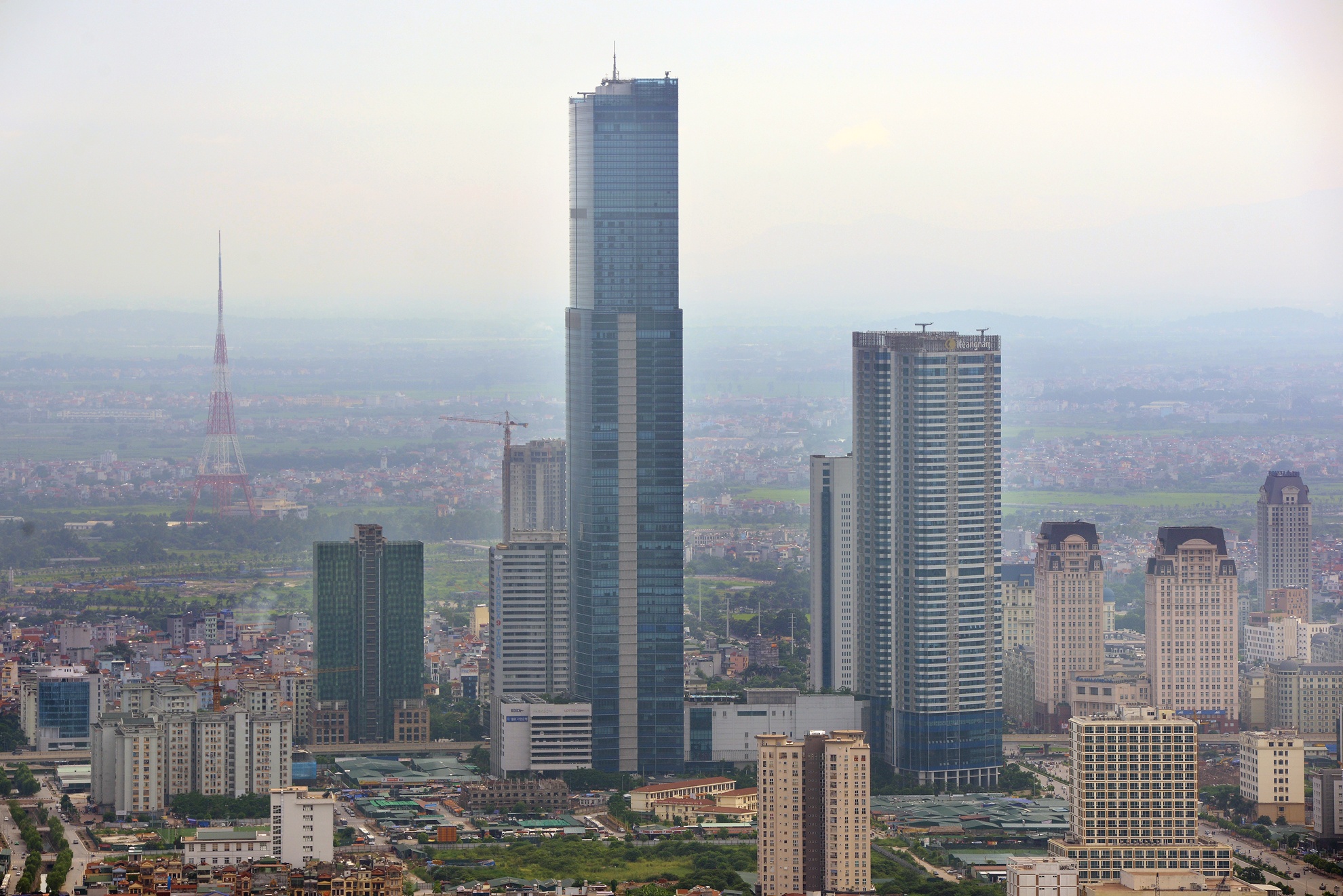 | Tòa nhà Keangnam cao nhất Việt Nam với 72 tầng sừng sững bên đường Phạm Hùng, phía sau là Tháp truyền hình mới của Đài truyền hình Hà Nội trên địa bàn phường Đại Mỗ, quận Nam Từ Liêm. |