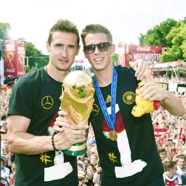 | Lão tướng Klose cũng đeo vòng như đồng đội trong sự kiện ăn mừng chiến thắng cùng cổ động viên Đức mới diễn ra. |