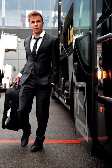 | Người hùng của mùa giải năm nay, chàng cầu thủ vô cùng điển trai Mario Goetze đã ghi dấu ấn sâu đậm trong lòng người hâm mộ bóng đá,lịch lãm với vest đen và chiếc vòng quen thuộc. |
