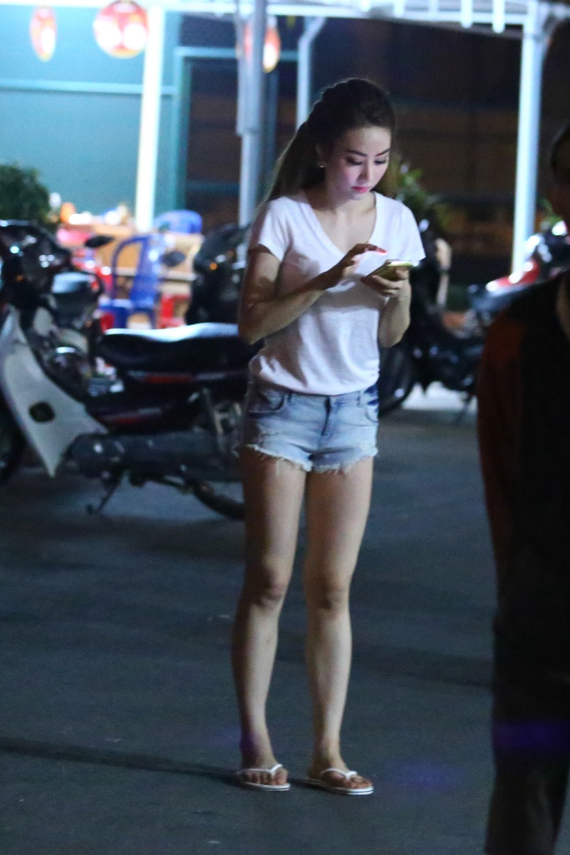 Ngân Khánh diện quần ngắn cũn đi ăn khuya với trai Tây