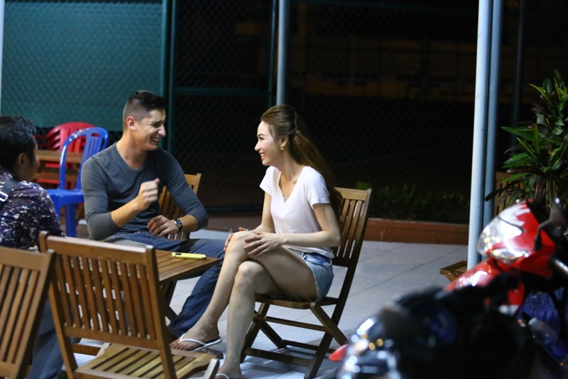 Ngân Khánh thường dẫn Kristian đi thưởng thức những món ngon Sài Gòn sau mỗi buổi tập luyện vất vả. Khi đến quán ăn, Ngân Khánh ôm bạn nhảy từ phía sau đầy thân thiết.