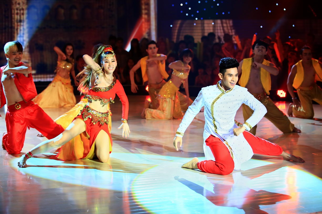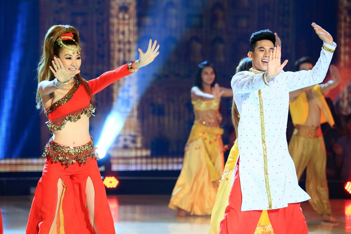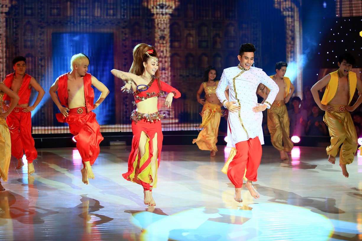 Ngân Khánh – Hồ Vĩnh Khoa mang đến tiết mục Student Of The Year ở thể loại bollywood. |