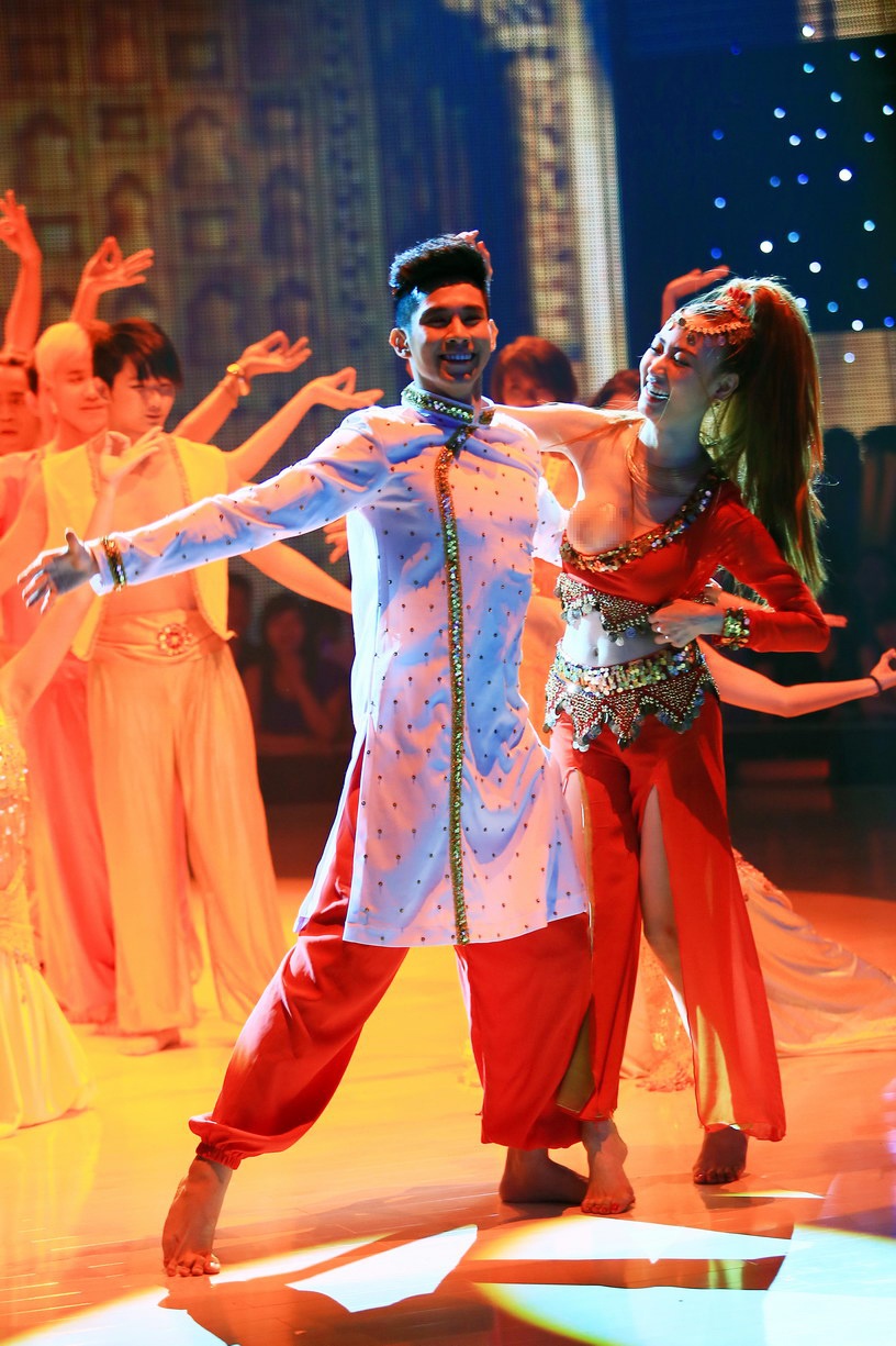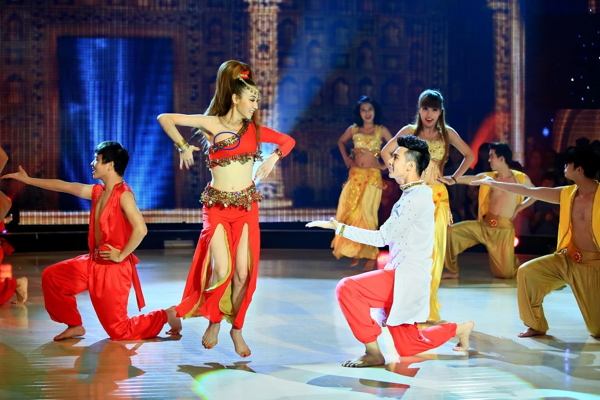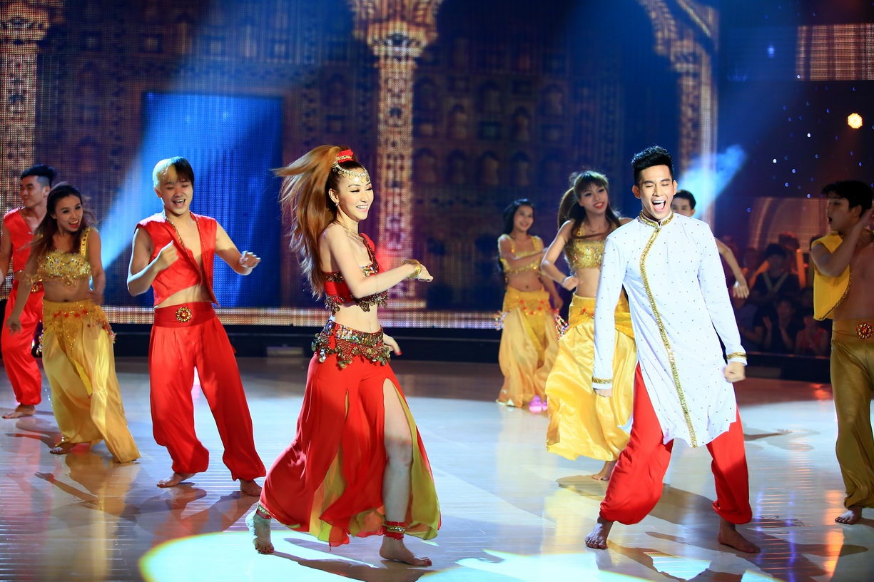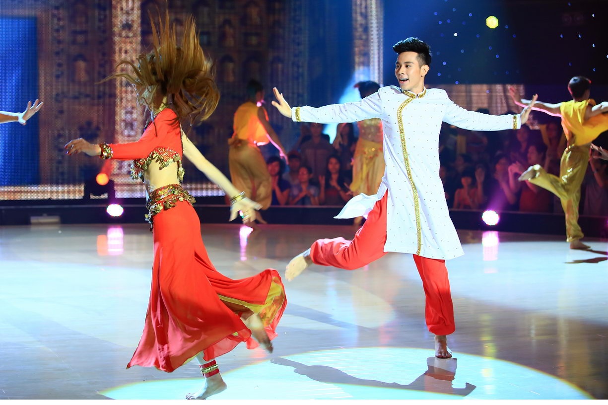 Ngân Khánh – Hồ Vĩnh Khoa mang đến tiết mục Student Of The Year ở thể loại bollywood. |
