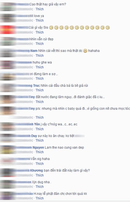 Nhiều fan hoài nghi và đặt ra những câu hỏi: "Sao vậy chị", "Cạo thật hay cao giả đấy chị?" hay "Sao cạo đầu đi tu hả?". Một số khác lại khẳng định: "Nhìn cái đầu đã biết là giả rồi" hay "Nhìn cái vết kia làm sao mà thật được".