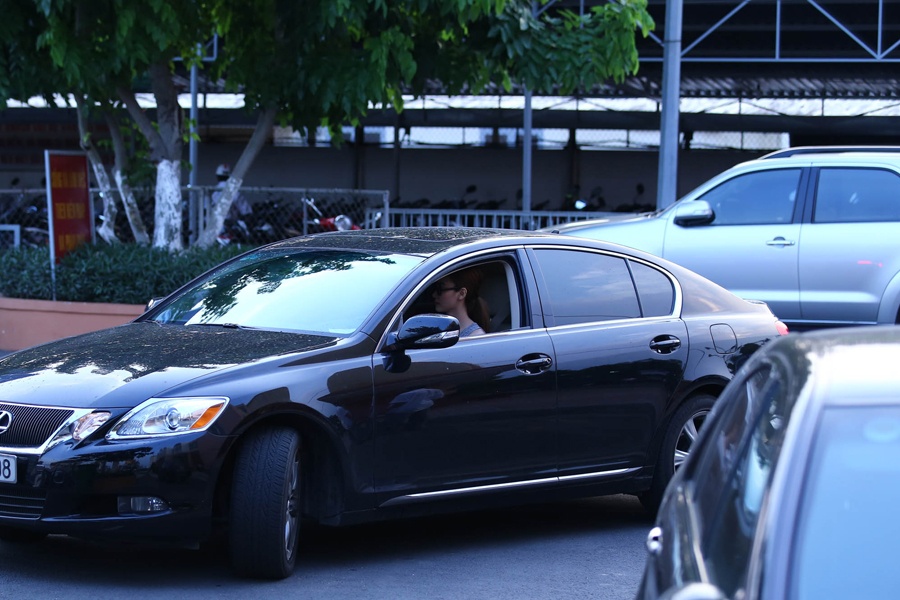 Nữ ca sĩ nhanh chóng tiến về phía xe ô-tô màu đen sang trọng.
