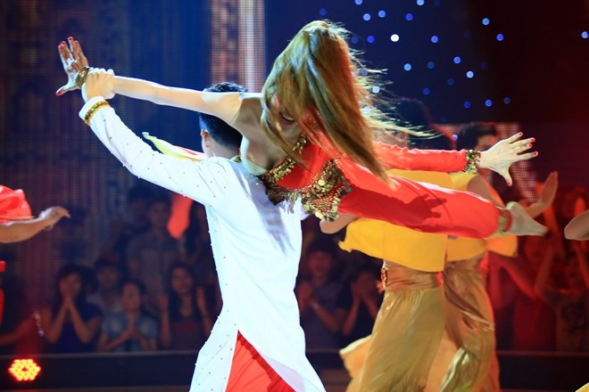 | Ngân Khánh mắc lỗi trong Đêm ngàn sao 3/2009. |