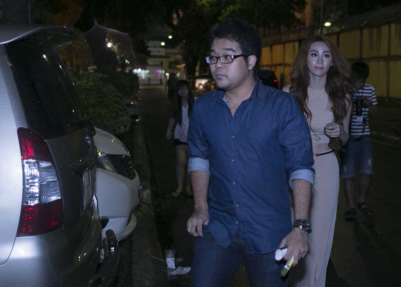 | Nhằm tránh sự quan tâm của mọi người, tối qua Ngân Khánh đến khá muộn, sát giờ biểu diễn của Tuấn Hưng. Cô tự lái xế hộp riêng và đi cùng một người bạn thân đến xem Tuấn Hưng biểu diễn. Hình ảnh này lọt vào ống kính máy ảnh. |