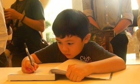 | Cậu bé 7 tuổi viết tưởng niệm trong sổ tang tri ân Đại tướng. |