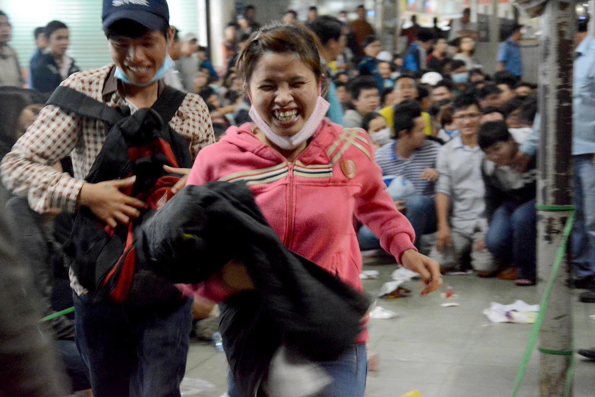| Thời gian để hành khách tiếp cận được nhân viên bán vé rất dài, có người mất hơn 10 tiếng. Một số khách đã gọi người nhà đến để tiếp tục xếp hàng lấy số thứ tự chờ mua vé. |
