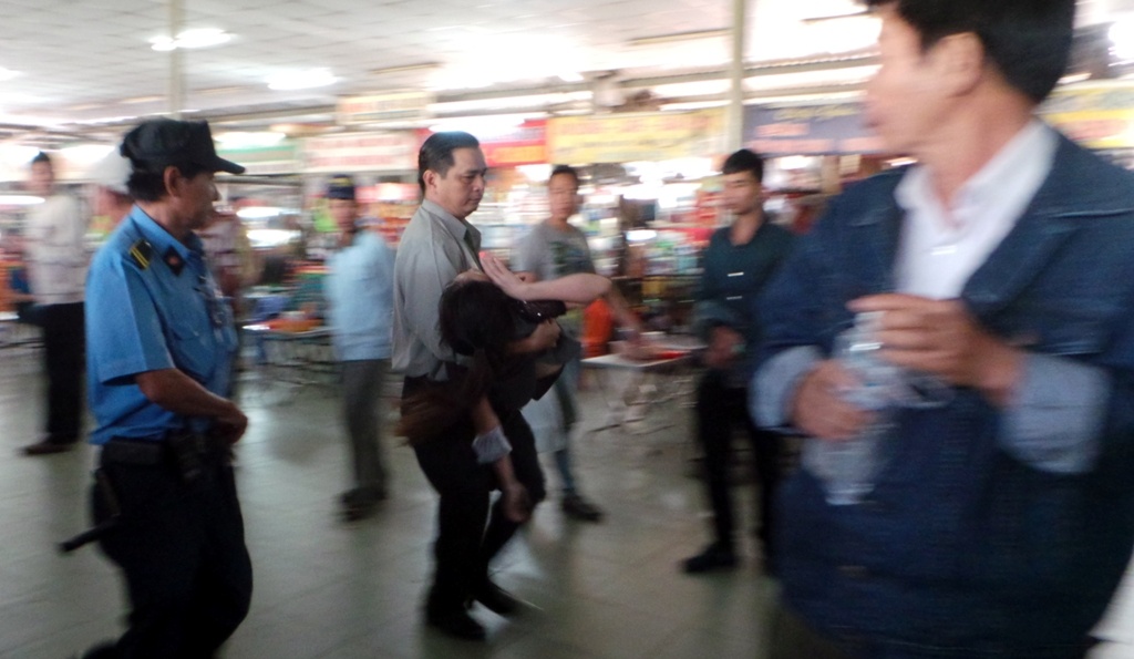 | Một hành khách chờ đợi nhiều giờ nhưng chưa được phát phiếu thứ tự đã bực mình gây gổ với lực lượng bảo vệ của bến xe. |